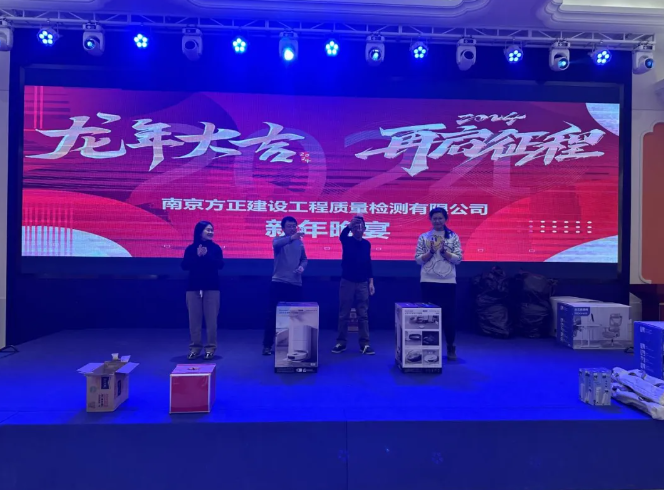在2024春節(jié)到來前夕,南京方正建設(shè)工程質(zhì)量檢測(cè)有限公司于2024年2月6日下午在公司二樓會(huì)議室召開年終總結(jié)會(huì)議,會(huì)上各部門進(jìn)行年終匯報(bào),并對(duì)優(yōu)秀員工、積極份子進(jìn)行表彰。會(huì)后在南京白金漢爵大酒店召開了“迎新春,再啟程”的年度慶祝晚會(huì)——匯總過往一年的收獲,期待明年的再啟征程。