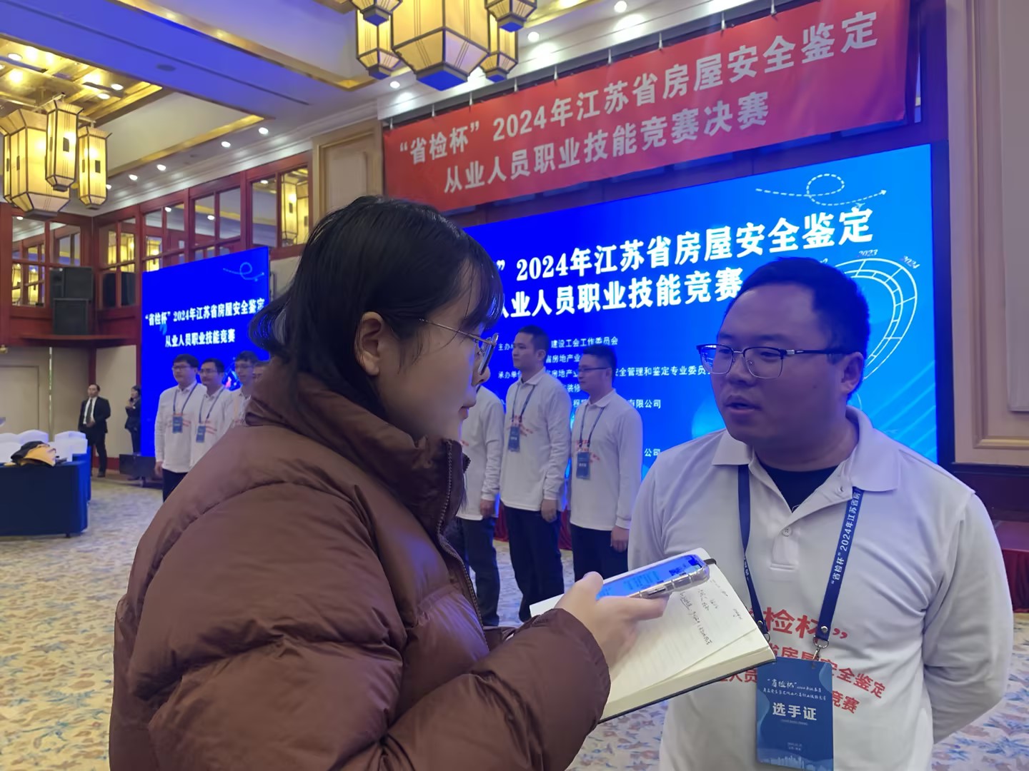 2024年12月11日,由江蘇省房地產(chǎn)業(yè)協(xié)會(huì)主辦的“省檢杯” 2024年 江蘇省房屋安全鑒定從業(yè)人員職業(yè)技能競賽決賽團(tuán)體賽在南京金陵?duì)钤獦谴缶频觏樌e行。
